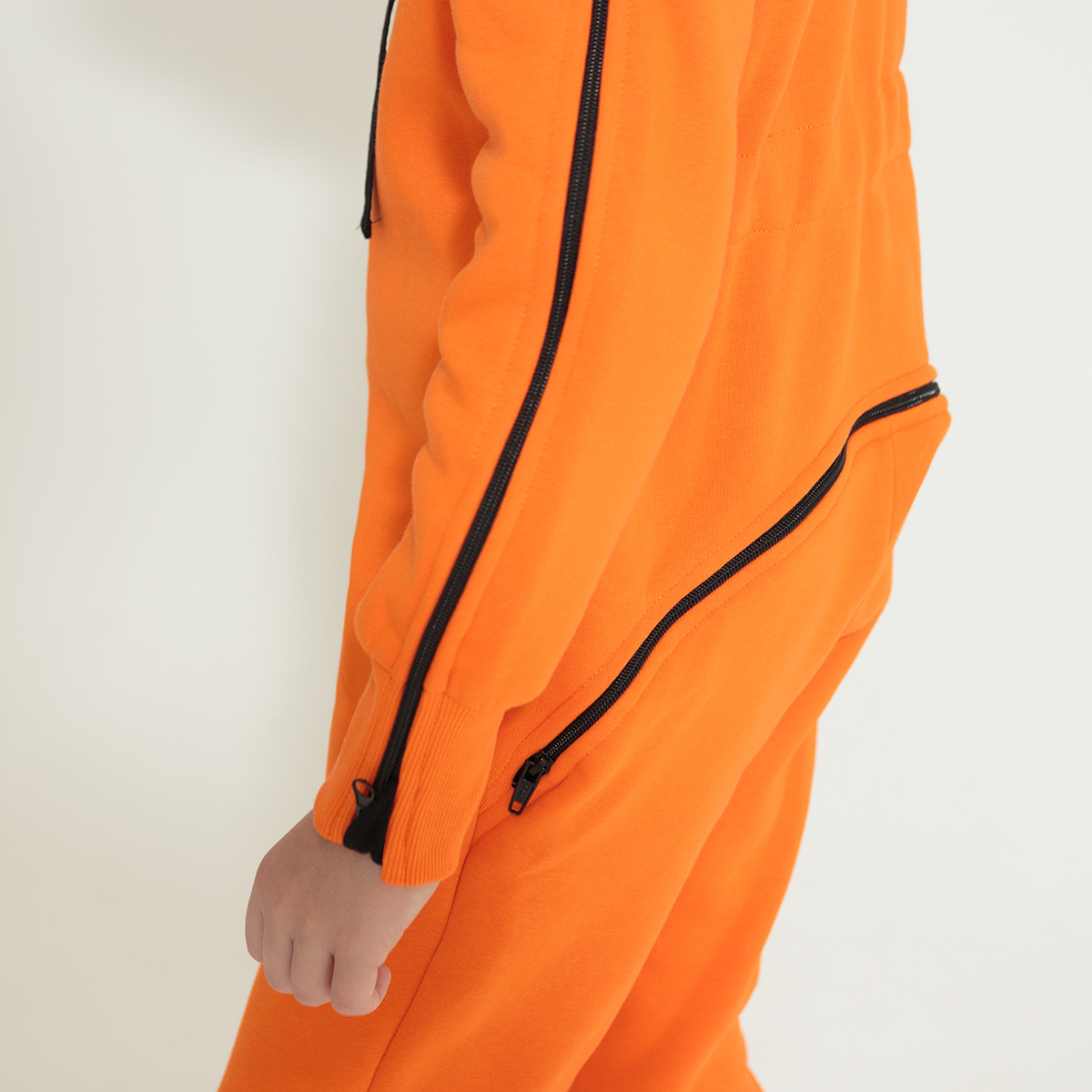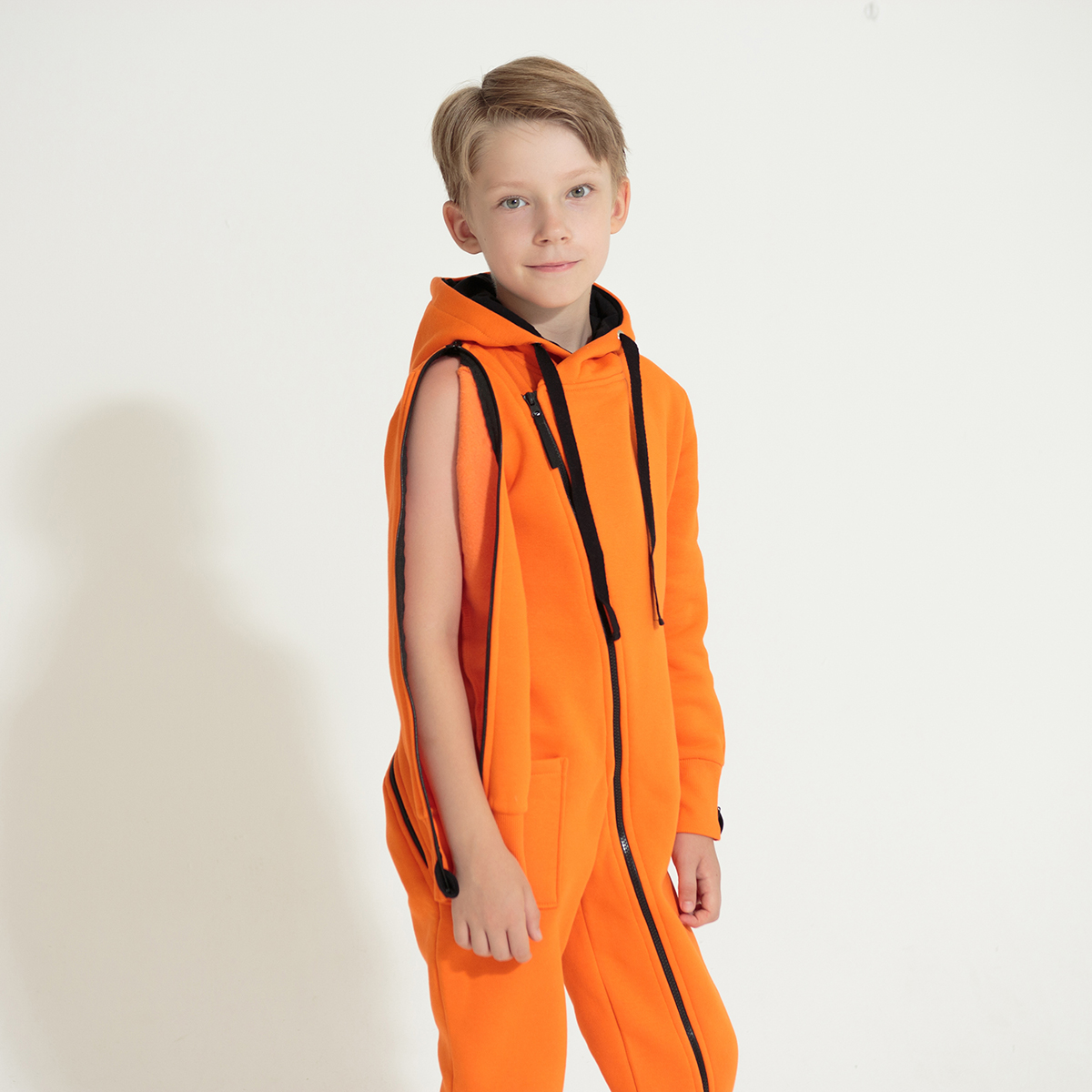 Адаптивный крой для разных потребностей: Крой рассчитан на стройных ребят, который не сковывает движения и удобен для положения сидя или лежа. Комбинезон обеспечивает защиту от холода при нахождении в инвалидной коляске. Имеются расстегивающиеся рукава, которые актуальны, для ребят с протезами, ортезами, гипсами, пр. аппаратами, для ребят с бинтами и хрупкостью кожи.