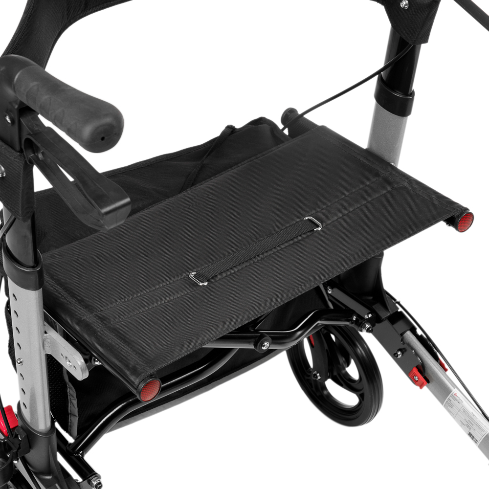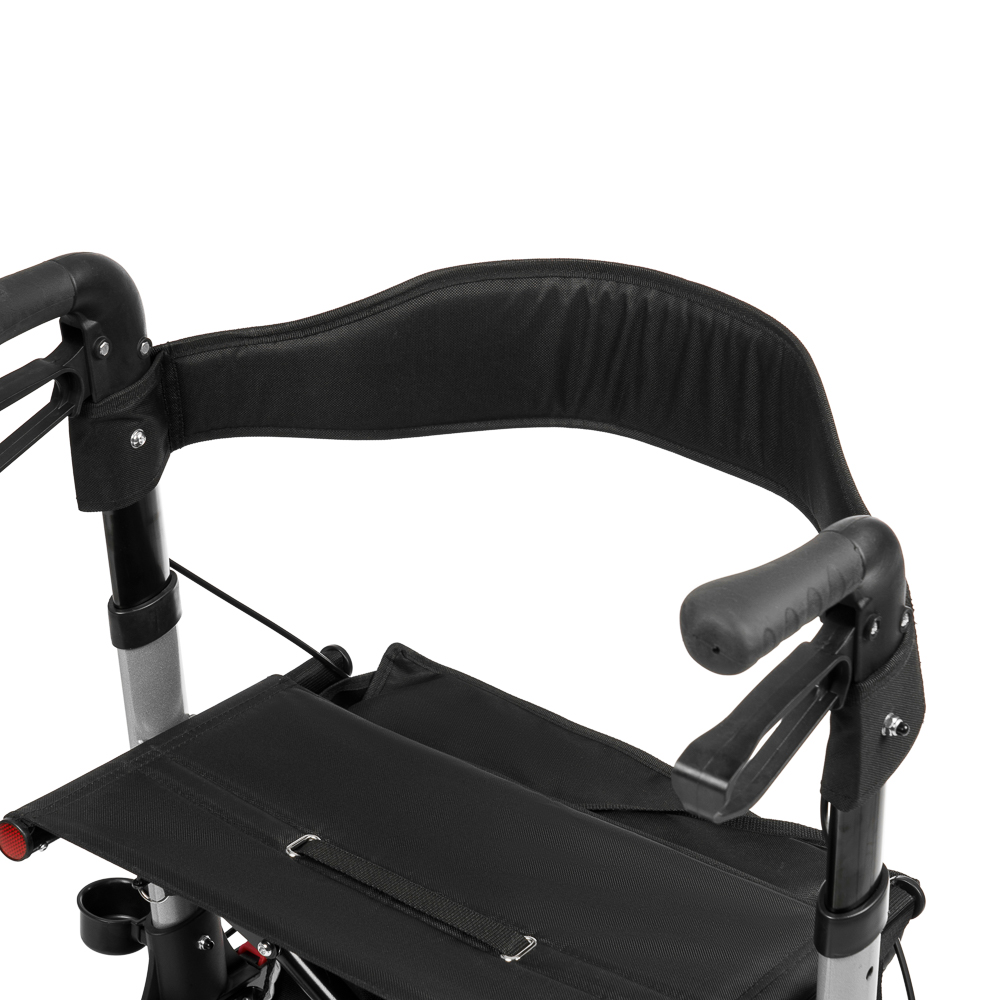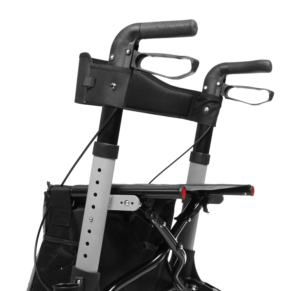 Ходунки оснащены мягким сиденьем и упором для спины, регулируемым по высоте