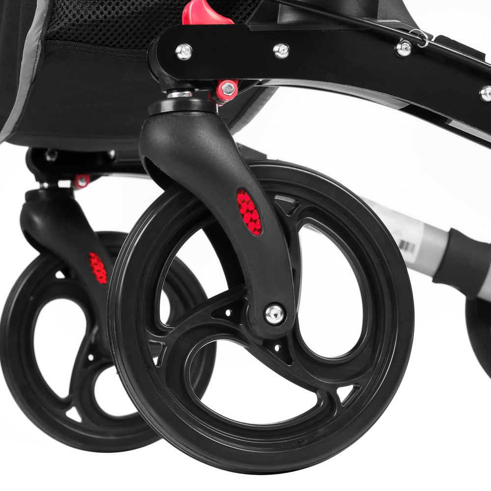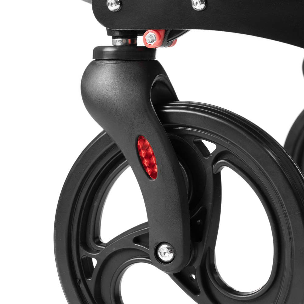 Литые передние самоориентирующиеся колеса, задние — фиксированные