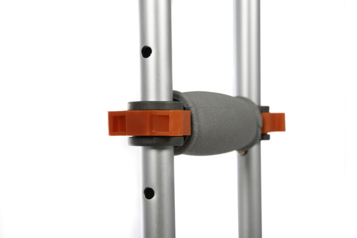 Двойная регулировка: Кнопочные фиксаторы позволяют отдельно настраивать общую высоту костыля и положение рукоятки под индивидуальные параметры пользователя.