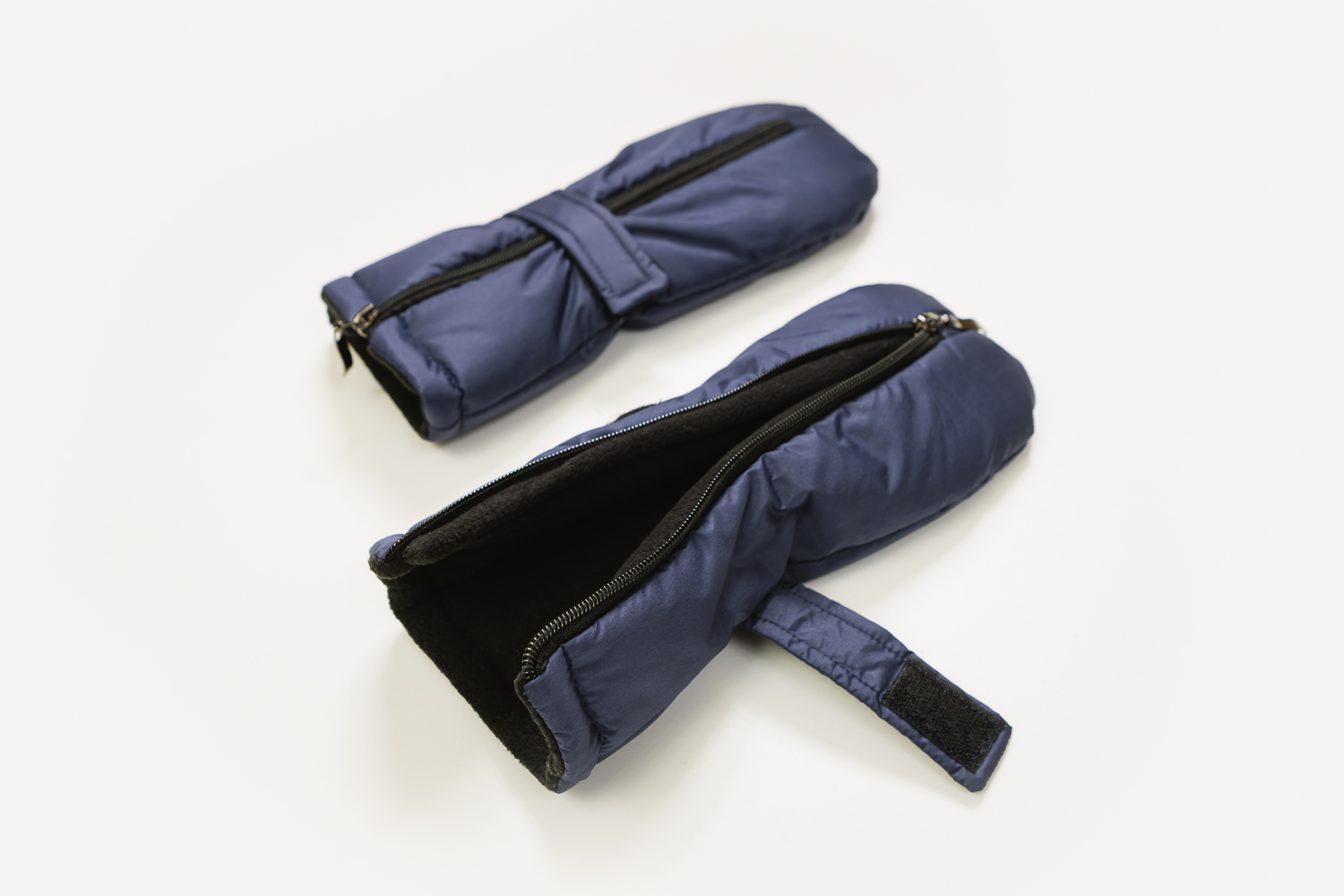 Варежки разработаны специально для людей со спастикой кистей рук. Благодаря удобной конструкции с замком по всей длине и регулируемой липучкой велькро, варежки легко надеваются и снимаются даже на ручку, сжатой в кулачок.