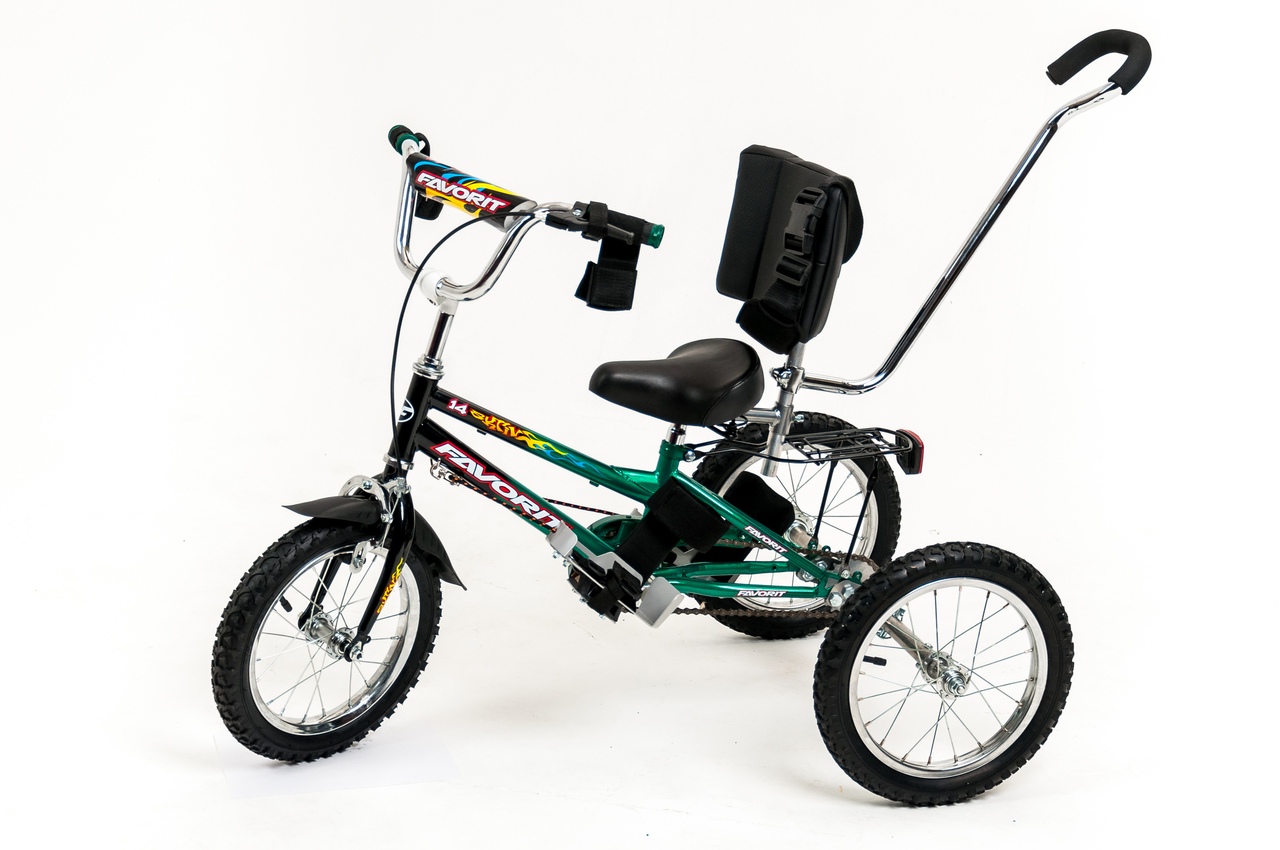 никальный по функциональным возможностям трехколесный велосипед для детей с заболеванием центральной нервной системы и опорно-двигательного аппарата. Используют в лечебно-профилактических учреждениях, санаториях, реабилитационных центрах.